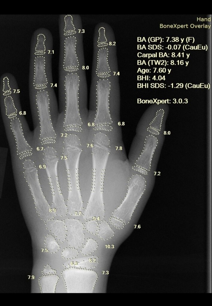 Bone age, on the other hand, tells us how mature the child’s bones are behaving biologically. It is usually estimated using an X-ray of the hand and wrist, where doctors look at how developed the bones and growth plates appear.